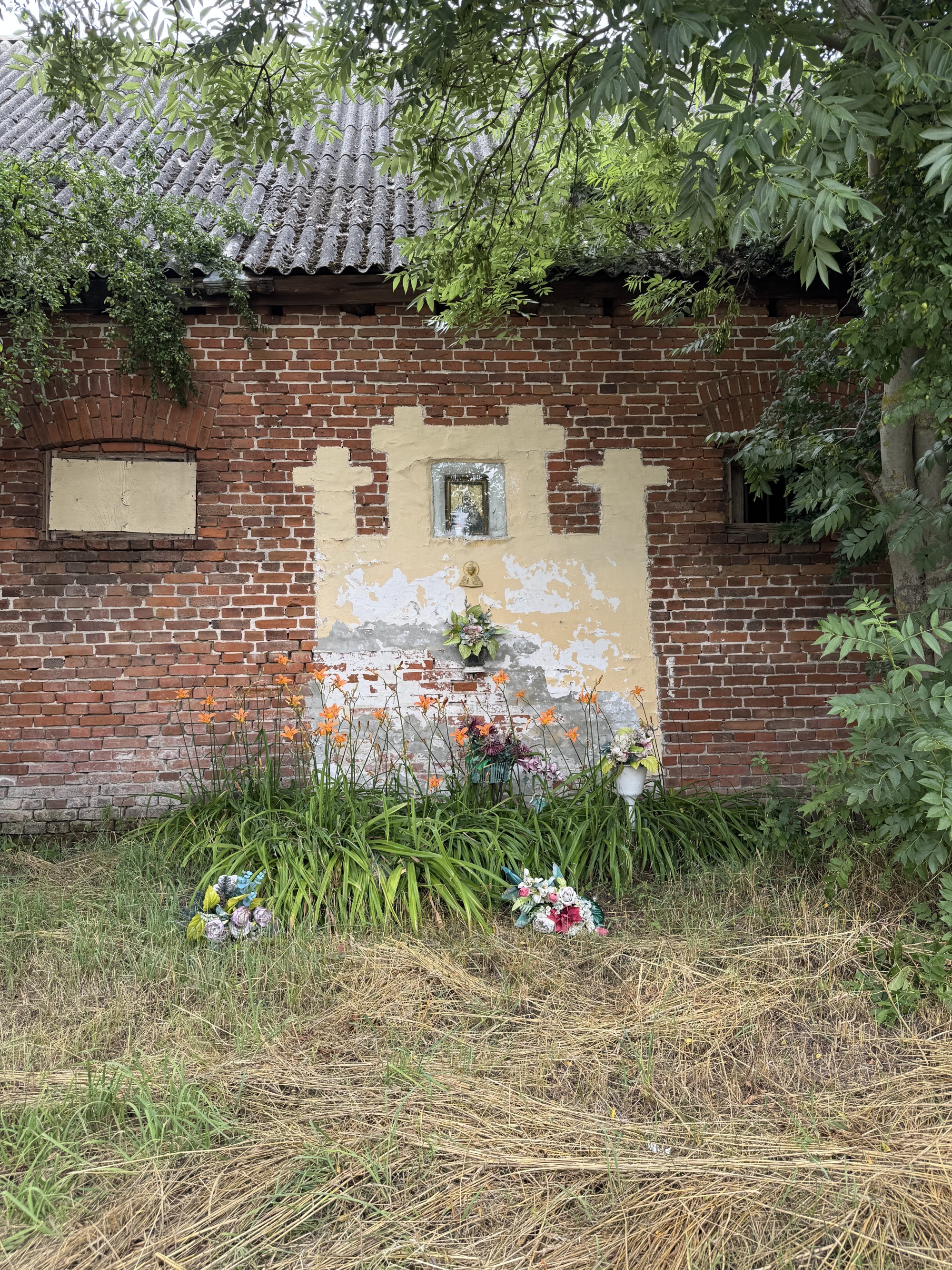 Kapliczka umieszczona na budynku dawnej owczarni, która wchodziła w skład wielkiego majątku ziemskiego. Zdjęcie: Kapliczki Powiatu Kolskiego