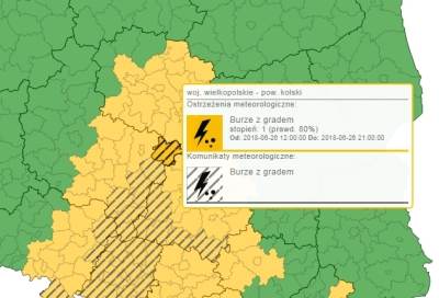 Z 90% prawdopodobieństwem wystąpienia burzy z gradem na terenie województwa Wielkopolskiego w tym Powiatu Kolskiego informuje Instytut Meteorologii i Gospodarki Wodnej.