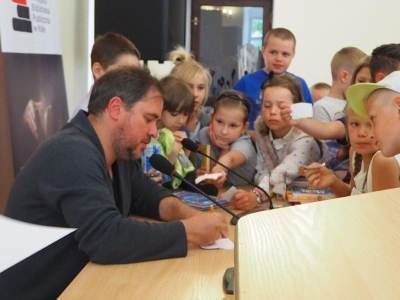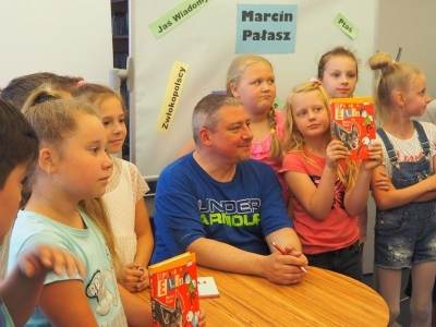 Najmłodsi czytelnicy Powiatowej i Miejskiej Biblioteki Publicznej w Kole gościli (13.06.) pisarza Wojciecha Widłaka, autora kochanych przez nich ksiażek, m.in. serii z Panem Kuleczką oraz Wesołym Ry...