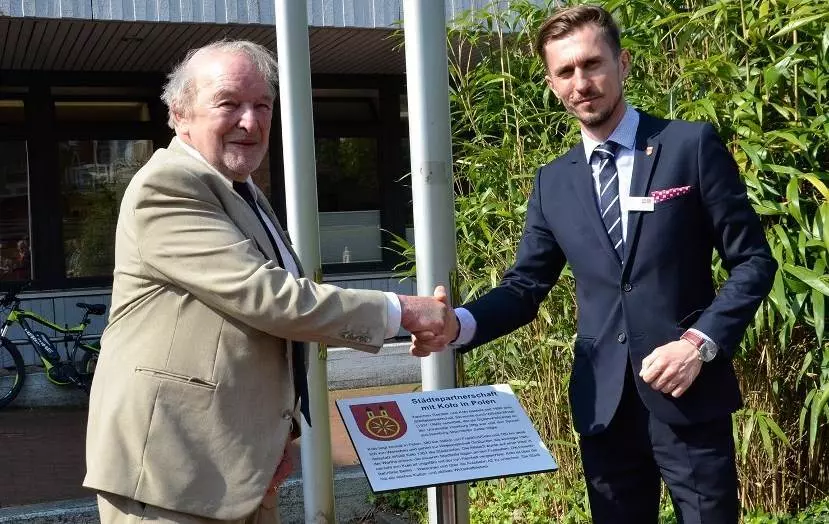 Odsłonięcie tablicy poświęconej naszemu miastu dokonali Przewodniczący Rady Miejskiej Miasta Reinbek Pan Ernst Dieter Lohmann oraz Przewodniczący Rady Miejskiej w Kole Pan Artur Szafrański.