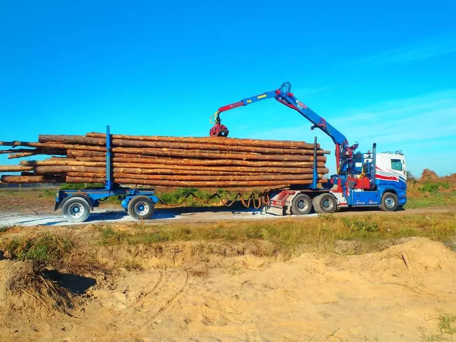 Podczas przemieszczania się pomiędzy załadunkami drewna w balach wysięgnik urządzenia załadunkowego zaczepił o linię energ. - dochodzenie prowadzi Policja.