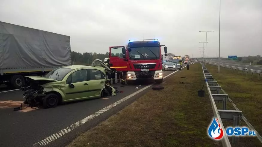 Po przybyciu na miejsce zdarzenia dowódca stwierdził, że w wypadku uczestniczyły dwa samochody osobowe marki Citroen i Peugeot. Poszkodowani wyszli ze samochodów przed dojazdem służb ratunkowych, które po przybyciu udzieliły im pomocy. Zadaniem Straży Pożarnej było zabezpieczenie miejsce zdarzenia, odłączenie akumulatorów oraz odłączenie zbiornika LPG. Ustaleniem przyczyn wypadku zajmie się Policja.