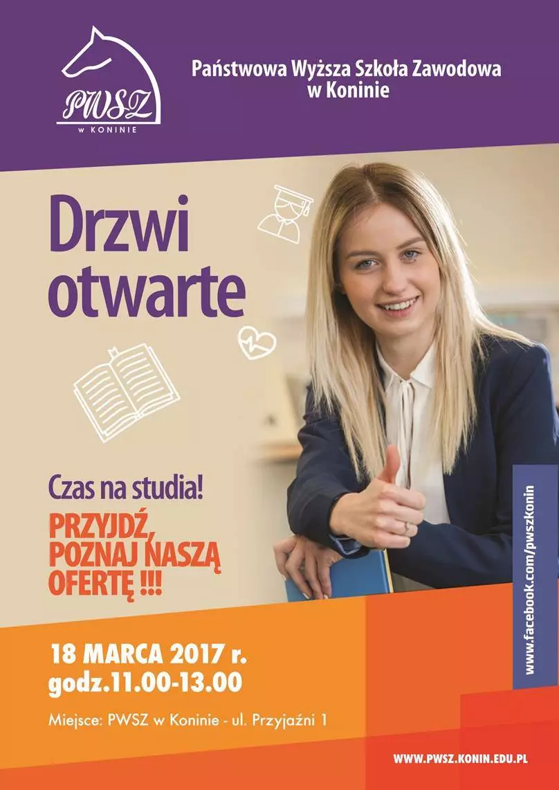 Państwowa Wyższa Szkoła Zawodowa w Koninie zaprasza 18 marca (sobota) uczniów klas maturalnych i wszystkich zainteresowanych na Drzwi Otwarte 2017. To największa tego typu impreza w naszym regionie.