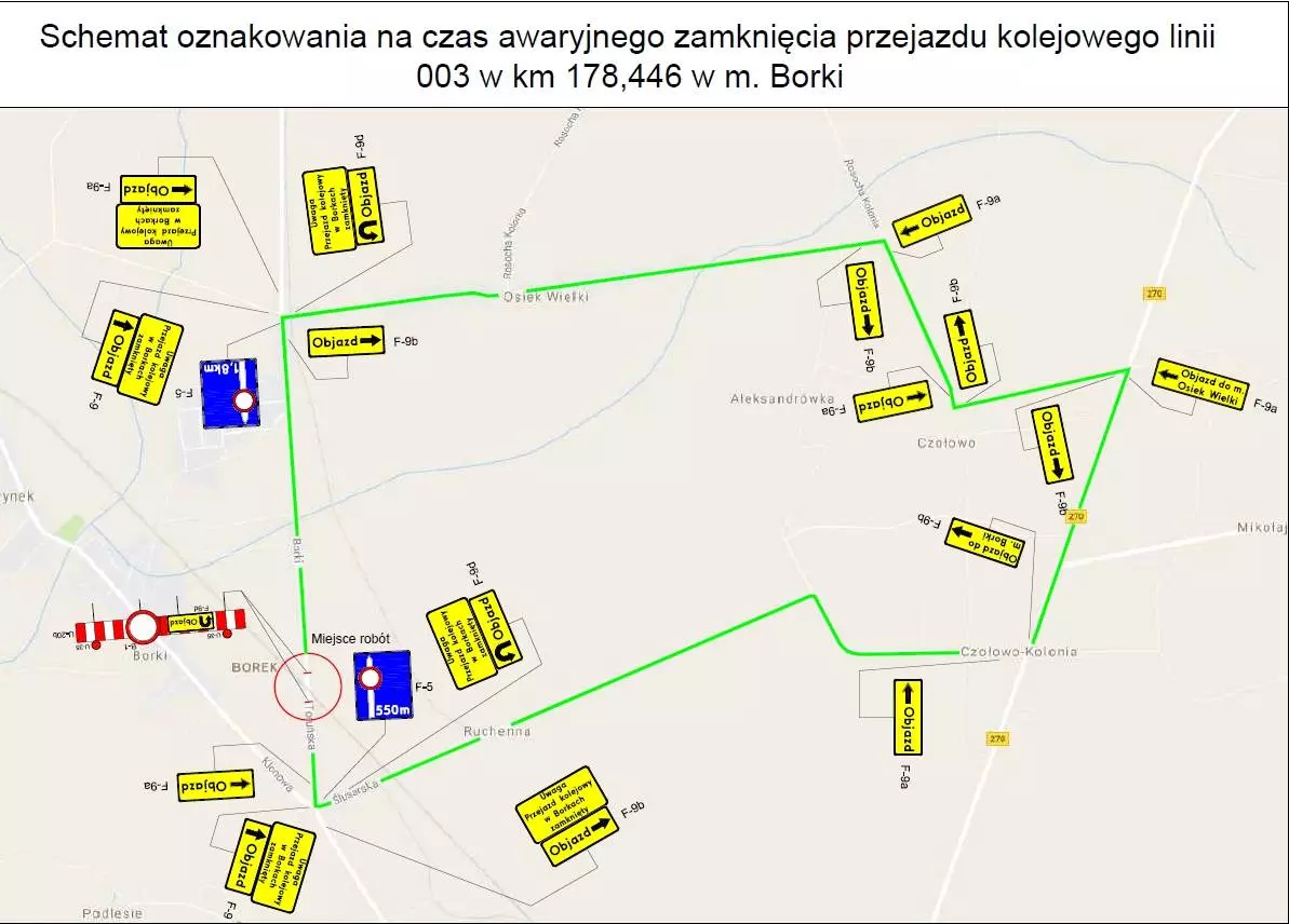 Uprzejmie informujemy, że w związku z awarią na przejeździe kolejowym w km 178,446 linii kolejowej nr 003 na drodze Warszawa – Kunowice skrzyżowanie z drogą powiatową nr 3205PP Koło – Sampolno w dniu 06.04.2017 r. w godzinach: 21:00 do 02:00 nastąpią utrudnienia dla ruchu drogowego wskutek całkowitego zamknięcia/w drogi .