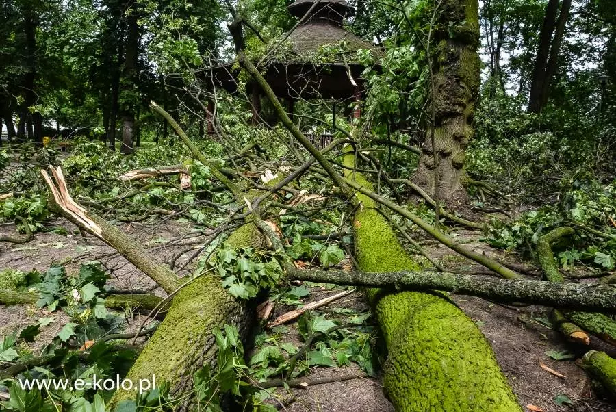 Takich zniszczeń nie obserwowaliśmy od dłuższego czasu w żadnym z kolskich parków. Wczorajsza noc, mimo że jej największa siła ominęła Powiat Kolski to i tak nie obyło się bez wielu zniszczeń. Kilka dorodnych klonów, na których koronach widać było jeszcze wiele gniazd ptaków zostały położone i złamane jak zapałki. Na miejscu pracują pracownicy urzędu, którz porządkują teren. Jedno z drzew przewróciło się bardzo blisko altany, na szczęście jej nie uszkodziło.