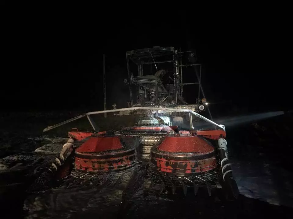 W dniu wczorajszym o godzinie 21:23 zadysponowano jednostki straży pożarnej do akcji w miejscowości Kawęczyn gm. Babiak po przybyciu na miejsce zabezpieczono teren i stwierdzono, że pali się samojezdna sieczkarnia do cięcia kukurydzy .Podano dwa prądy piany gaśniczej na paląca się maszynę.