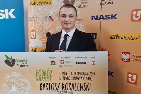 Bartosz Koralewski, absolwent Technikum Informatycznego, obecnie student informatyki na Politechnice Łódzkiej, jest jednym z 12 laureatów polskiej edycji konkursu HUAWEI Seeds for the Future 2017.