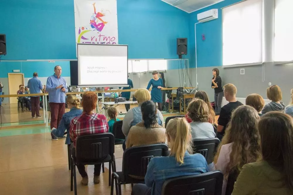 W części warsztatowej, która odbyła się na sali fitness kolskiego MOSiRu, prelegenci w osobach Adrianny Brzoskiej z PomigajMY, Aleksandry Włodarczak z MigMedic oraz Olgierda Kosiby z Migaj.eu, mówili o Kulturze Głuchych i języku migowym oraz uczyli znaków języka migowego. Przedstawiono mity i fakty na temat osób Głuchych i języka migowego., uczestnicy nauczyli się kilkunastu podstawowych zwrotów w Polskim Języku Migowym (PJM), a całość warsztatów zwieńczyła wspólna nauka i miganie piosenki „Niedziela będzie dla nas” Niebiesko-Czarnych w przekładzie na PJM, w trakcie, której uczestnicy poznali kolejnych kilkanaście znaków tegoż języka. Prowadzący niejednokrotnie zachęcali uczestników warsztatów do nauki języka migowego i przełamywania barier komunikacyjnych z osobami Głuchymi.