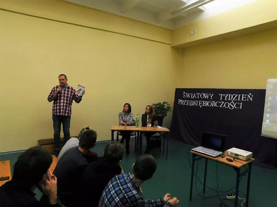 Okazją do tego spotkania jest Światowy Tydzień Przedsiębiorczości, który w kolskiej placówce przebiega pod hasłem: ”Być przedsiębiorczym”. W trakcie spotkania z uczniami zaproszeni goście poruszali zagadnienia związane ze słowem „przedsiębiorczość”. Zwracali uwagę na cechy charakteru, predyspozycje zawodowe, uzdolnienia i umiejętności, gotowość do dostosowania się do potrzeb i wymogów rynku pracy, które umożliwiają zaplanowanie i modyfikację indywidualnej ścieżki kariery zawodowej. Na przykładzie PKO Banku Polskiego poruszono także kwestie wspierania lokalnej przedsiębiorczości przez instytucje finansowe. Nie zabrakło również pytań do gości ze strony uczniów i nauczycieli. Na zakończenie spotkania uczniowie obejrzeli krótką prezentację, której przesłanie brzmiało: „Przedsiębiorczość to odwaga w realizacji własnych pomysłów, a także zdolność do wykorzystania nadarzającej się okazji. Być przedsiębiorczym to znaczy być: gotowym do podejmowania ryzyka, odpowiedzialnym za podjęte decyzje i konsekwentnym w działaniu.”