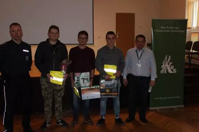 Konkurs poprzedziło szkolenie, w czasie którego młodzież dowiedziała się o zagrożeniach występujących w gospodarstwach rolnych oraz jak im zapobiegać. Wszyscy uczestnicy otrzymali materiały szkoleniowe, długopisy oraz kalendarze na 2018 rok. Dwa pierwsze miejsca zajęli uczniowie klasy IV Technikum Mechanizacji Rolnictwa - Przemysław Jabłoński i Bartłomiej Bas, a trzecie Krzysztof Frontczak z klasy III Technikum Mechanizacji Rolnictwa.