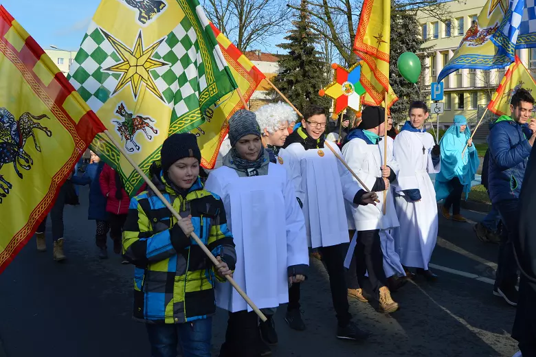 Po jej zakończeniu już po raz piąty wyruszyliśmy w barwnym korowodzie na ulice naszego miasta - w ten sposób włączając się w hucznie obchodzony w całym kraju Orszak Trzech Króli. Na czele naszego „zielonego” orszaku szedł anioł z Gwiazdą Betlejemską, a zanim kroczył król ze swoją świtą, w której było kilkuset naszych duszpasterzy i parafian. Przemierzając ulice kolskiej Starówki, Most Warszawski i ul. Sienkiewicza śpiewaliśmy wspólnie kolędy i pastorałki.