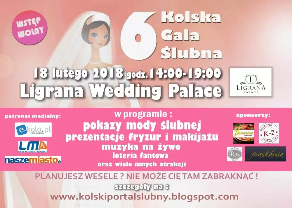Na 18 lutego br. zaplanowano kolejną edycję lokalnych targów ślubnych. Kolska Gala Ślubna w tym roku odbędzie się w Ligrana Wedding Palace w miejscowości Chojny.