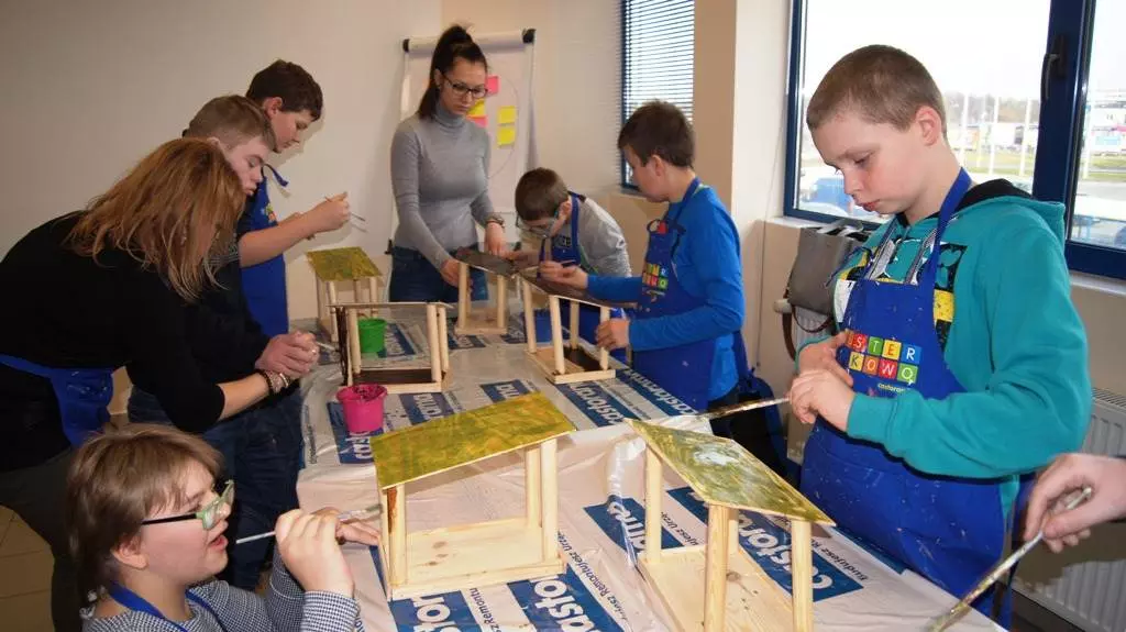 Uczniowie wzięli udział w warsztatach dotyczących dekoracji. Dzieci wraz z panią animator oraz opiekunami Mariolą Mroczkowska, Karoliną Krawczyk, Martą Oblizajek i Anią Białecka wykonały karmniki dla ptaków. Dzieci bardzo pilnie słuchały pani animator i wykonywały wszystkie polecenia. W ciągu niespełna dwóch godzin powstały piękne karmniki.