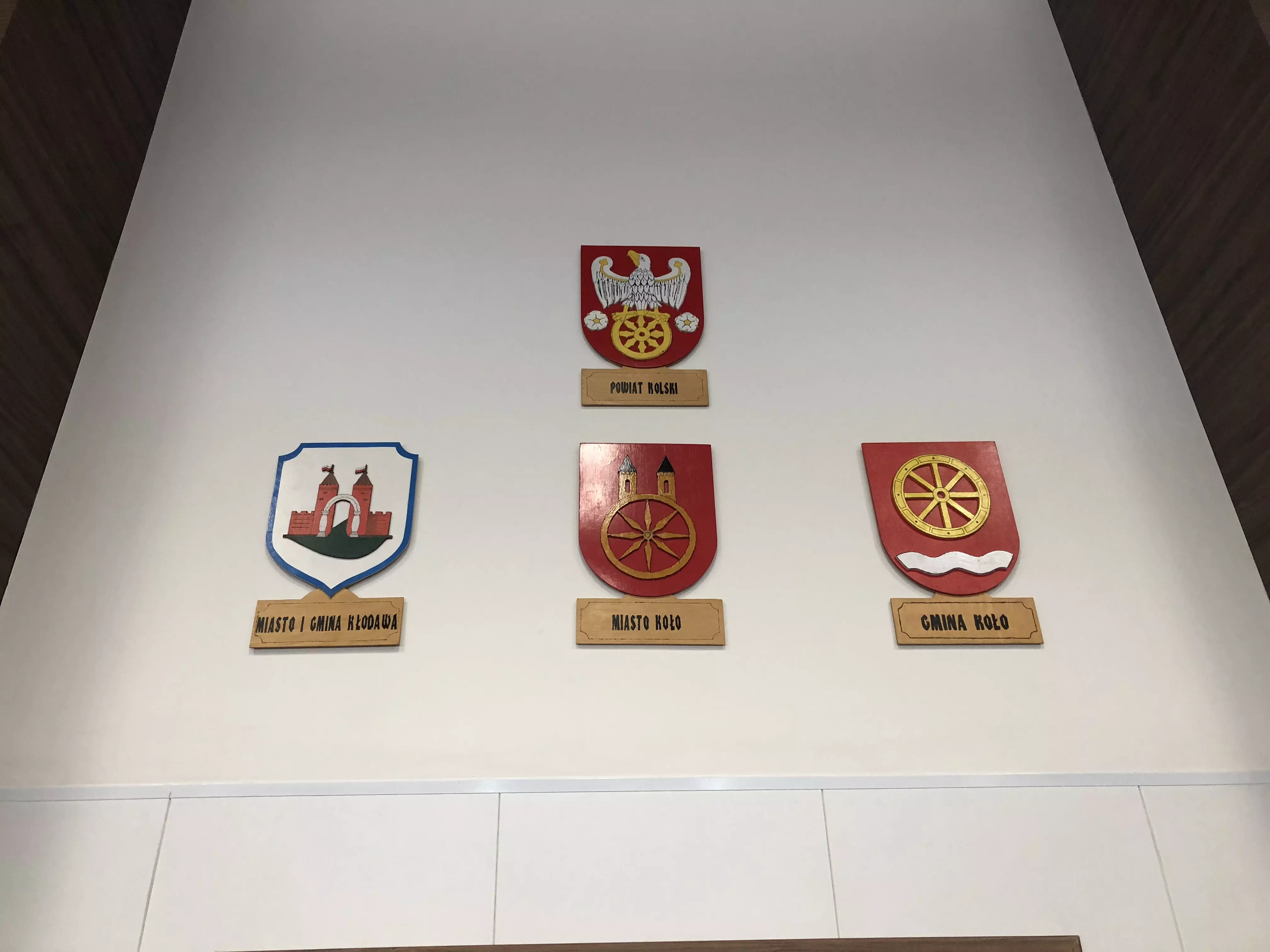 Ku zaskoczeniu dużej części obecnych na dzisiejszej Sesji Rady Powiatu Kolskiego na jednej ze ścian sali obrad pojawiły się.... herby gmin, które na jakiś czas musiały pożegnać się z tym miejscem.