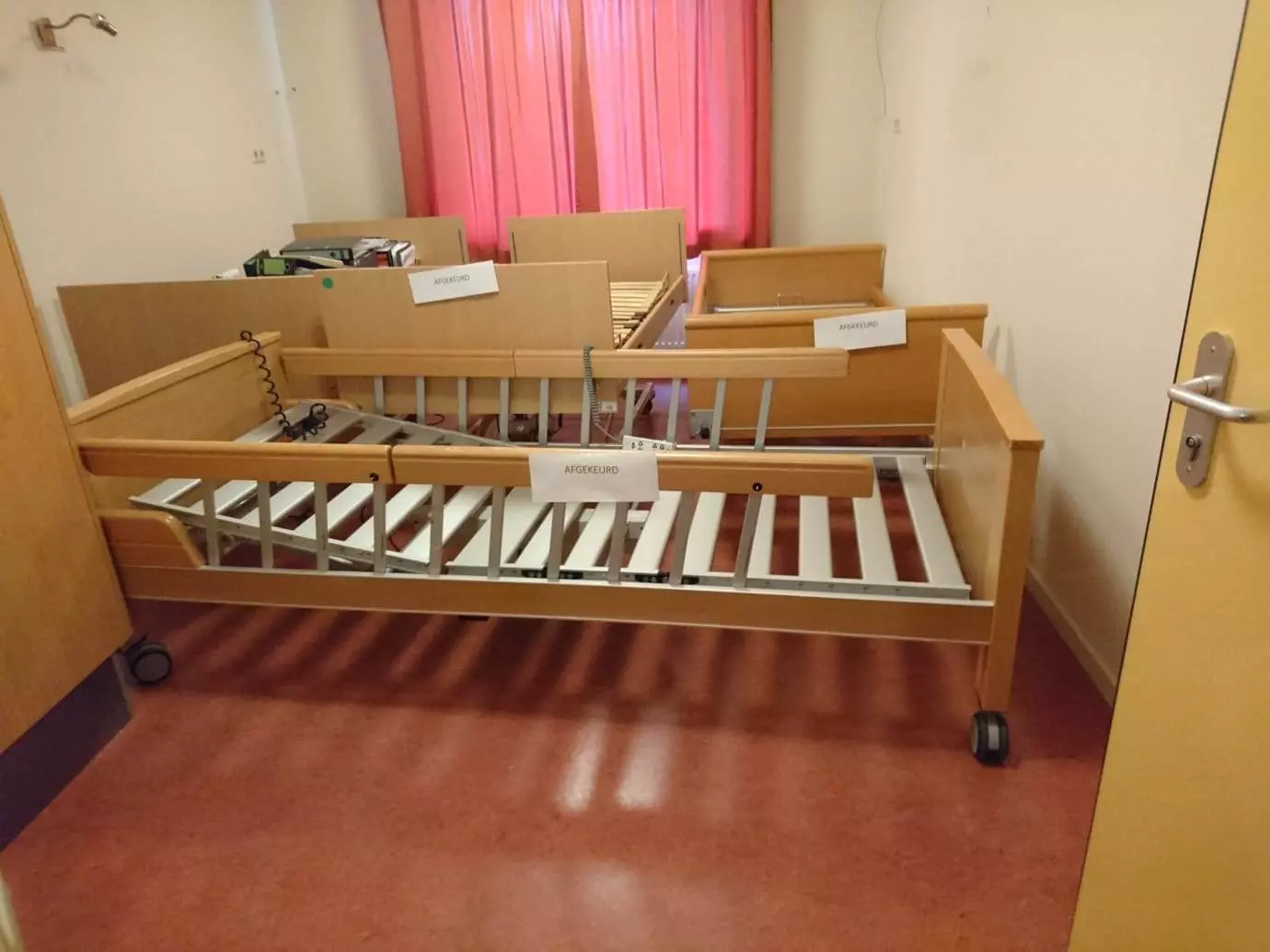 Menno Vos wraz z żoną Christine Tibbe i wolontariuszami: Hans May, Jan Heegen, Klaas Bruins i Henk Winter już od rana wyprowadzali poszczególne łóżka w kolejnych pięter i pokojów na zewnątrz budynku szpitala. Prawie pięć i pół godziny zajęło załadowanie 45 łóżek i kilkunastu materacy.