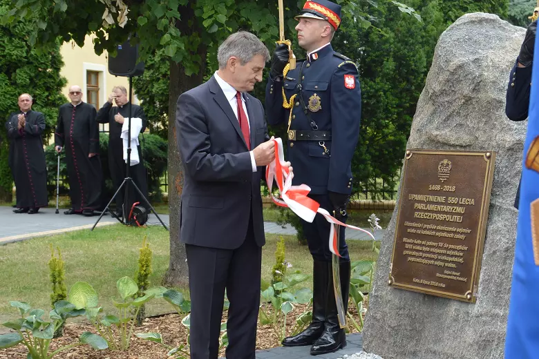 Po Mszy św., na placu przed świątynią marszałek Sejmu RP Marek Kuchciński odsłonił głaz z tablicą upamiętniającą pierwszy sejmik prowincjonalny z 1468 r., który zapoczątkował bogatą i dumną historię polskiego parlamentu. Przed odsłonięciem marszałek Sejmu powiedział: „Parlamentaryzm ukształtowany w drugiej połowie XV wieku i zmieniany pod wpływem różnych nurtów aż po dzień dzisiejszy stał się trwałym elementem polskiej państwowości. Parlament zawsze trwał, kiedy istniała Rzeczypospolita, ale także w czasie zaborów i okupacji. Sejm jest organem, który jednoczył Polskę na przestrzeni wieków. Wpływał na kształtowanie naszej świadomości politycznej i obywatelskiej, przyczyniał się do rozwoju prawa, historiografii i kultury znanej i cytowanej w całym cywilizowanym świecie”. Poświęcenia obelisku i tablicy dokonał ordynariusz włocławski ks. biskup Wiesław Alojzy Mering.