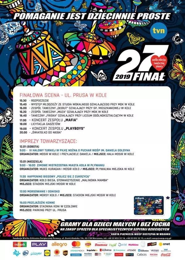 Już w najbliższą niedzielę rusza 27 Finał Wielkiej Orkiestry Świątecznej Pomocy. Celem tegorocznej zbiórki będzie zakup nowoczesnego sprzętu medycznego dla specjalistycznych szpitali dziecięcych. Są to placówki z oddziałami II oraz III stopnia referencyjności, czyli takie, które mogą dokonać specjalistycznej diagnozy oraz udzielić pomocy medycznej najciężej chorym dzieciom.