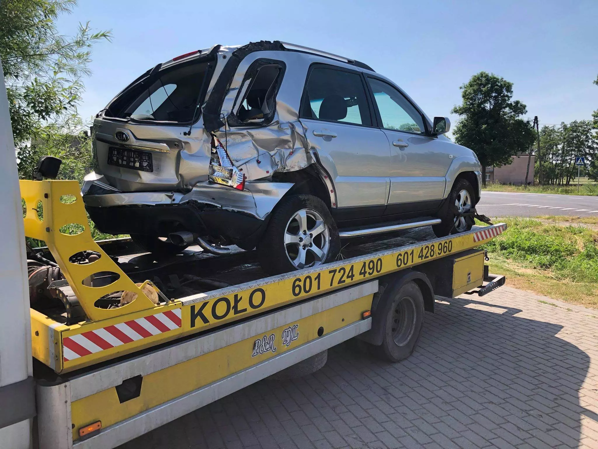 38-letni kierowca ciężarowego MAN-a nie zauważył, że jadący przed nim pojazd marki Kia Sportage zaczął zwalniać przed zbliżającym się skrzyżowaniem i najechał na jego tył. Siła była na tyle duża, że wyrzuciła osobówkę z drogi, którą podróżował 58-letni mężczyzna oraz 26-letnia kobieta.