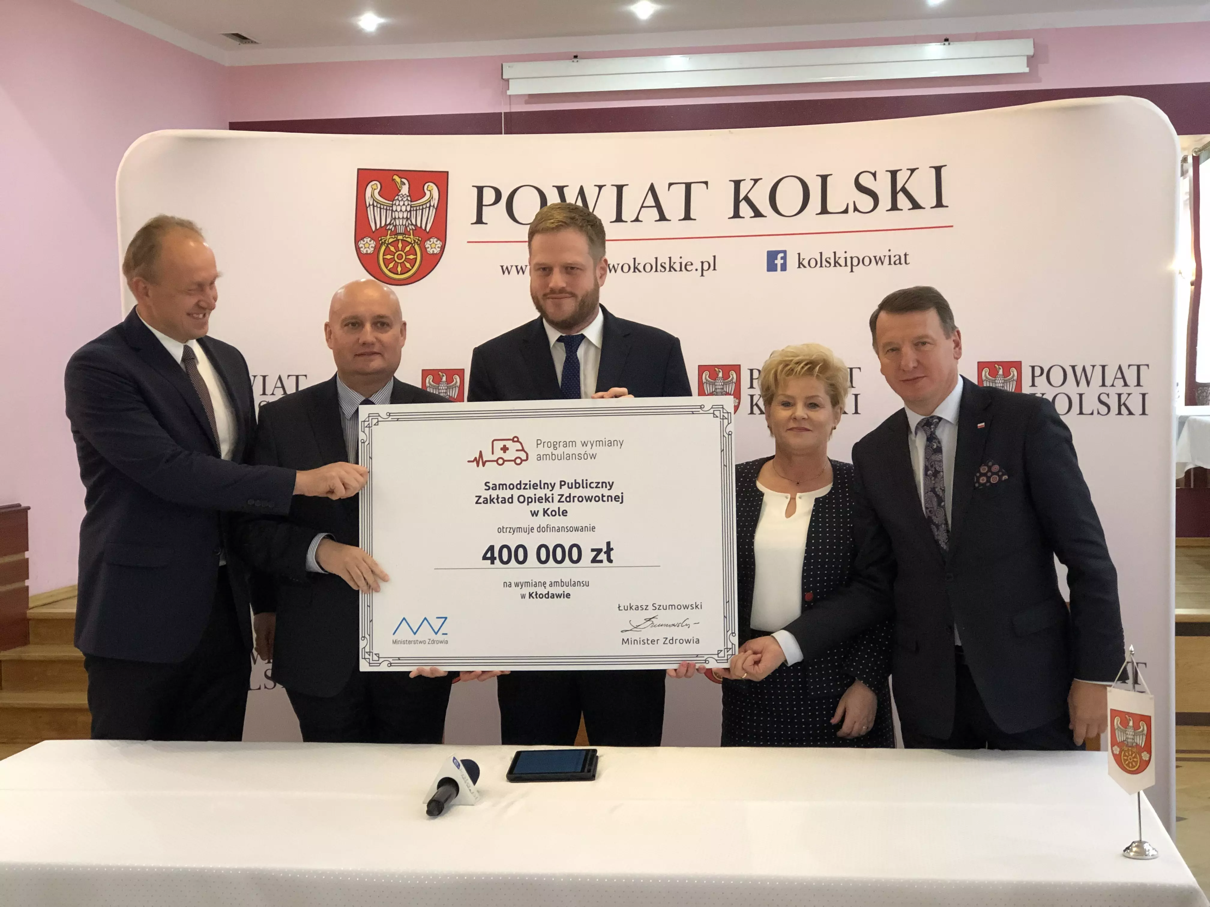 Dziś w Domu Górnika w Kłodawie odbyło się oficjalne podpisanie umowy dofinansowania między Wiceministrem Zdrowia Januszem Cieszyńskim a nową dyrektor szpitala w Kole - Iwoną Wiśniewską. Poprzednia, jeszcze pracująca karetka na swoim liczniku ma prawie pół miliona kilometrów. W przypadku ratowania życia lub zdrowia pacjentów ważne jest, aby samochód był bezawaryjni i niezawodny. Taką pewność da tylko nowy sprzęt.