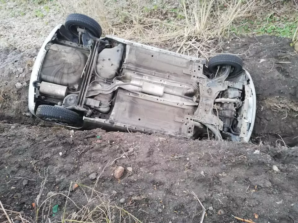 Pojazd odbijając się od barier zjechała do rowu, gdzie dachowała.