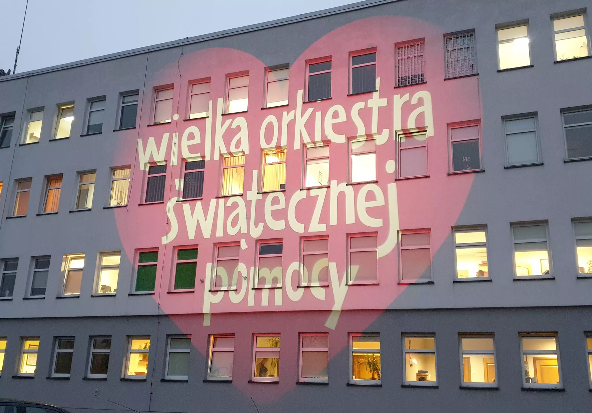Świąteczna ozdoba, wyświetlana przez rzutnik na jedną ze ścian budynku starostwa zamieniła się na ogromne serduszko fundacji Wielkiej Orkiestry Świątecznej Pomocy i pozostanie tam do zakończenia finału. W imieniu osób związanych od lat z WOŚPem dziękujemy!