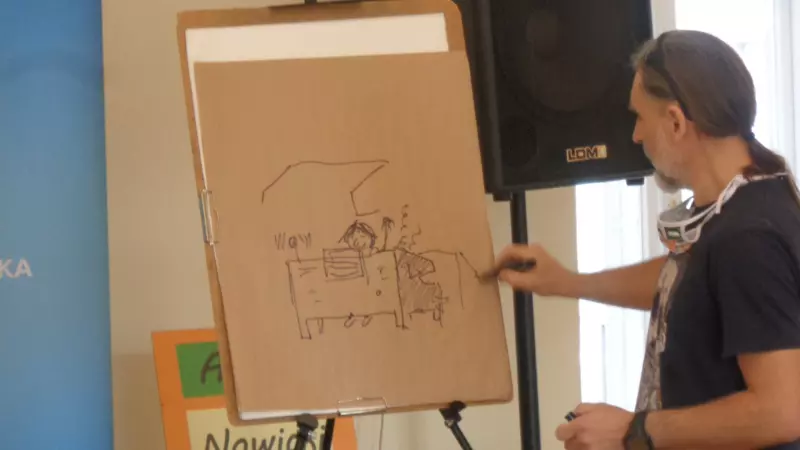 Powstał też cały szereg rysunków wykonanych przez uczestników warsztatów. Podczas ich tworzenia dzieci otrzymały niezwykle cenne rady i uwagi od ilustratora, który sam wykonał kilka ilustracji węglem i flamastrem.