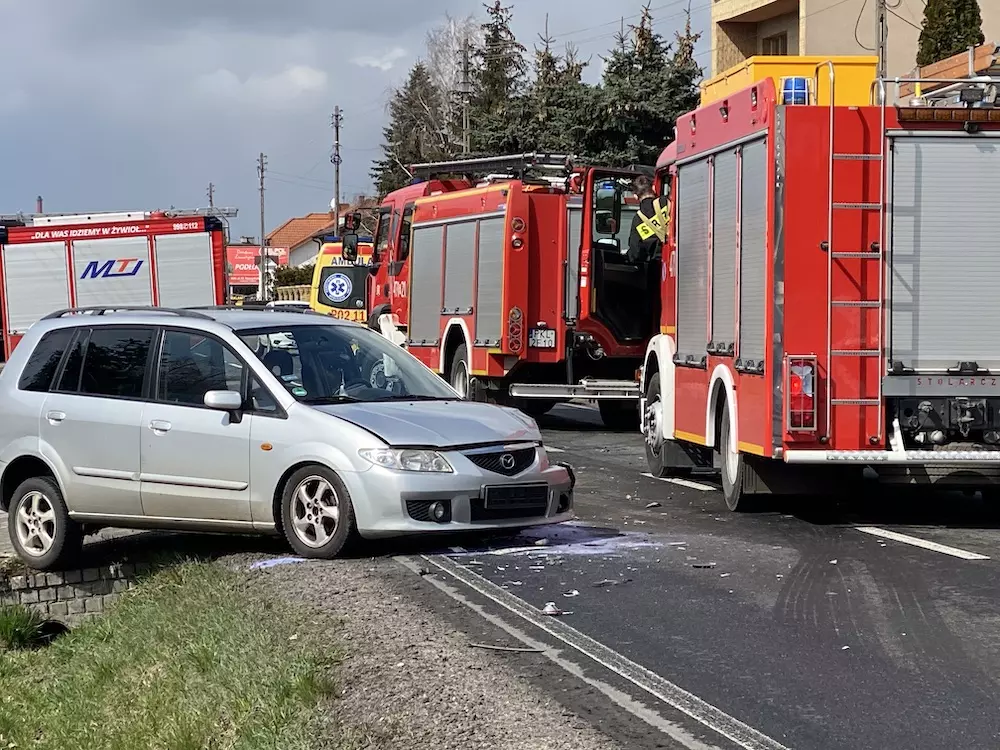 Na miejsce wezwano jednostki straży pożarnej, patrole policji oraz Zespół Ratownictwa Medycznego, który opatrzył 60-letnią kobietę (Łódź) z Mazdy.