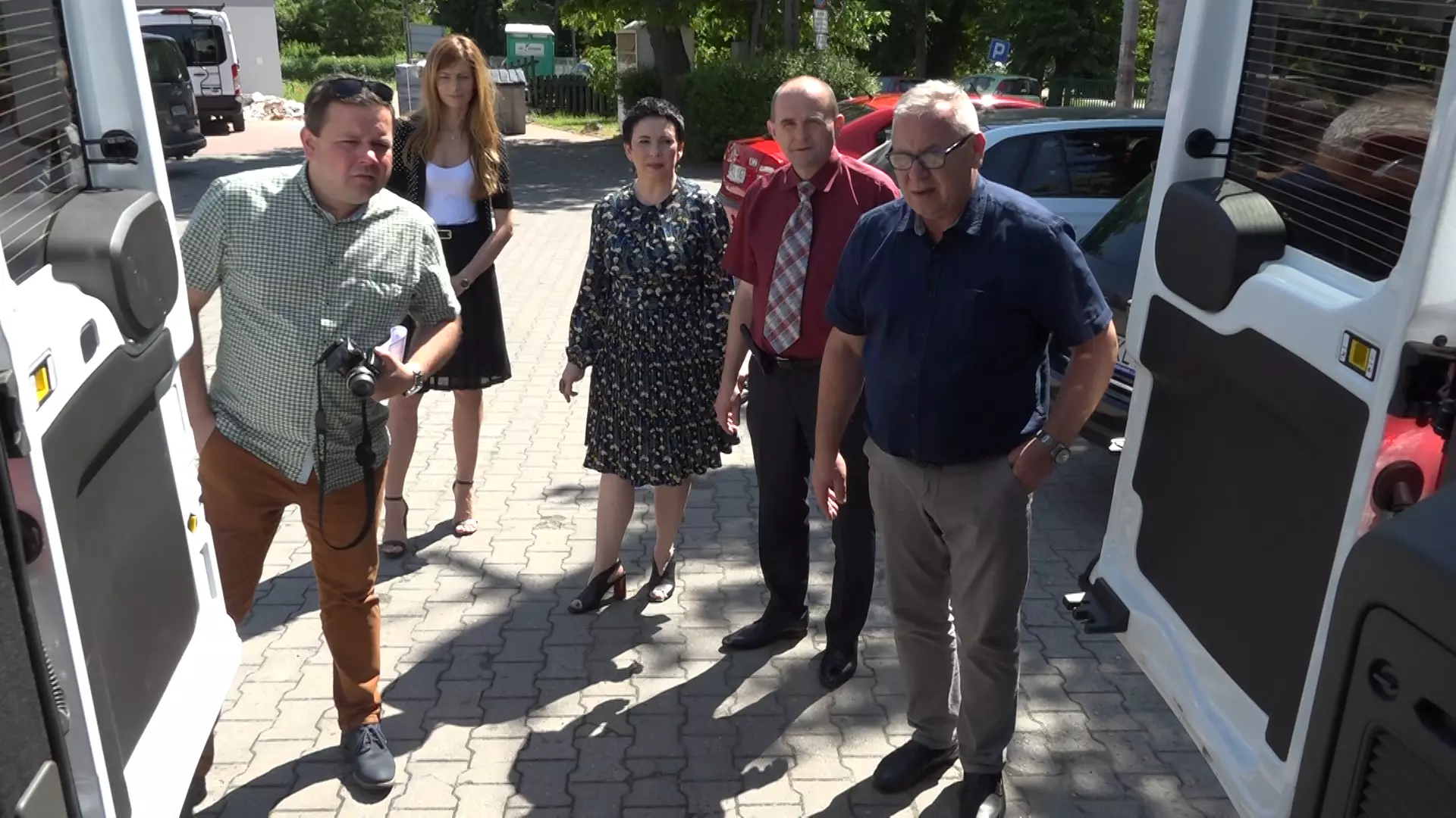 Na placu przed Urzędem Gminy w Kościelcu odbyło się oficjalne przekazanie nowo zakupionego busa przystosowanego do przewozu osób niepełnosprawnych.