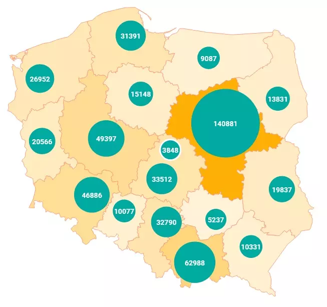 Sytuacja na krajowym rynku pracy potwierdza, że Polska zbliżyła się do krajów Europy Zachodniej. Od kilku lat obserwuje się bowiem niedobór pracowników. Pod koniec 2020 roku w Polsce pozostawało wolnych 84,4 tys. miejsc pracy. Najwięcej – 21,2 tys. – w zakładach przetwórstwa przemysłowego. Kolejne 10 tys. w obszarze handlu i naprawy pojazdów. Jednocześnie liczba wakatów istotnie zmniejszyła się w porównaniu z 2019 (125 tys.). To m.in. zasługa cudzoziemców, ponieważ od 2016 roku Polska notuje dodatnie saldo migracji. W 2021 roku liczba osób, które posiadają zezwolenie na pobyt w Polsce, wyniosła około 536 tys. Zdecydowana większość z nich przybywa nad Wisłę w poszukiwaniu pracy. Z danych Urzędu ds. Cudzoziemców wynika, że najwięcej obcokrajowców posiadających ważne dokumenty uprawniające do pobytu w Polsce przebywa w województwie mazowieckim (140 tysięcy), małopolskim (prawie 63 tysiące), wielkopolskim (49 tysięcy) i dolnośląskim (prawie 47 tysięcy).
