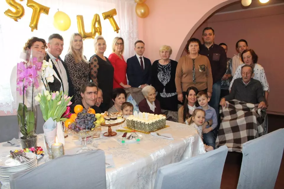 Burmistrz odczytał także w imieniu Prezesa Rady Ministrów Pana Mateusza Morawieckiego list gratulacyjny. Stulatce towarzyszyła rodzina, która przygotowała na tę szczególną okoliczność urodzinowy tort, nie zabrakło symbolicznego toastu za zdrowie Seniorki.
