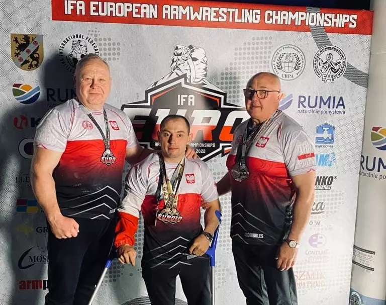 Na zawodach tych zdobyliśmy pięć medali: ja dwa złote w kategorii osób niepełnosprawnych na prawą i lewą rękę.W kategorii pełnosprawnych na prawą rękę zdobyłem srebrny medal. To mój pierwszy medal w kategorii osób pełnosprawnych na Mistrzostwach Europy. Na lewą rękę niestety zająłem czwarte miejsce. Tata zdobył dwa medale w kategorii senior grand masters na lewą rękę srebrny medal na prawą rękę brązowy. Pragnę tu serdecznie podziękować Aneta Dopierała-Augustyn za serię zabiegów fizjoterapeutycznych dzięki którym, moje ręce zostały doprowadzone do armwrestlingowej używalności