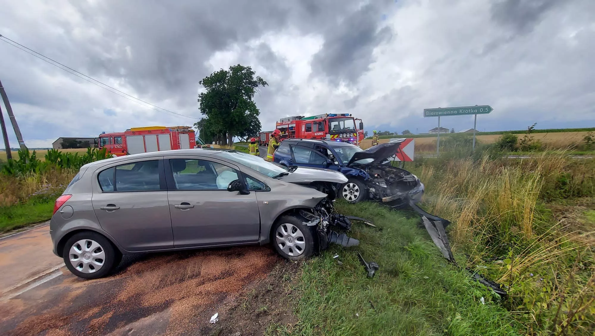 Kierująca Oplem kobieta została przewieziona do szpitala z podejrzeniem złamania obojczyka i urazem kolana. Postępowanie prowadzone jest w kierunku wypadku lecz dokładny przebieg i winnego zdarzenia poznamy po zakończonej pracy funkcjonariuszy policji.