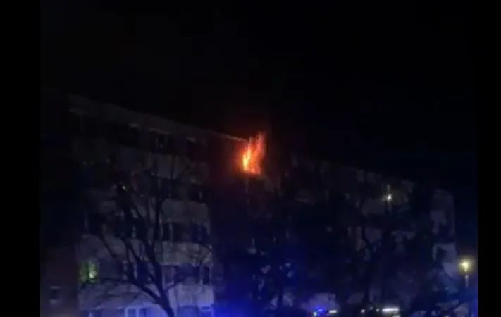 Z okna wychodził ogień. Pożar na ostatnim piętrze w bloku [WIDEO]