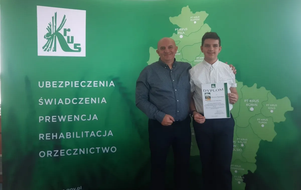 III miejsce zajął uczeń klasy VI Szkoły Podstawowej im. Wisławy Szymborskiej w Kiełczewie Smużnym Pierwszym, który odebrał gratulacje i nagrodę z rąk Dyrektora Oddziału Regionalnego Kasy Rolniczego Ubezpieczenia Społecznego w Poznaniu Pana Łukasza Grabowskiego oraz Zastępcy Dyrektora Pana Andrzeja Okpisza. Konkurs adresowany był do dzieci w wieku od 11 do 15 lat, których przynajmniej jeden z rodziców lub opiekun prawny podlegał ubezpieczeniu społecznemu rolników. Zadanie konkursowe polegało na ułożeniu rymowanki popularyzującej sposoby ograniczania ryzyka oddziaływania substancji szkodliwych na istoty żywe i skażenia środowiska naturalnego w gospodarstwach rolnych. Patronat Honorowy nad konkursem sprawował Minister Edukacji i Nauki Przemysław Czarnek.