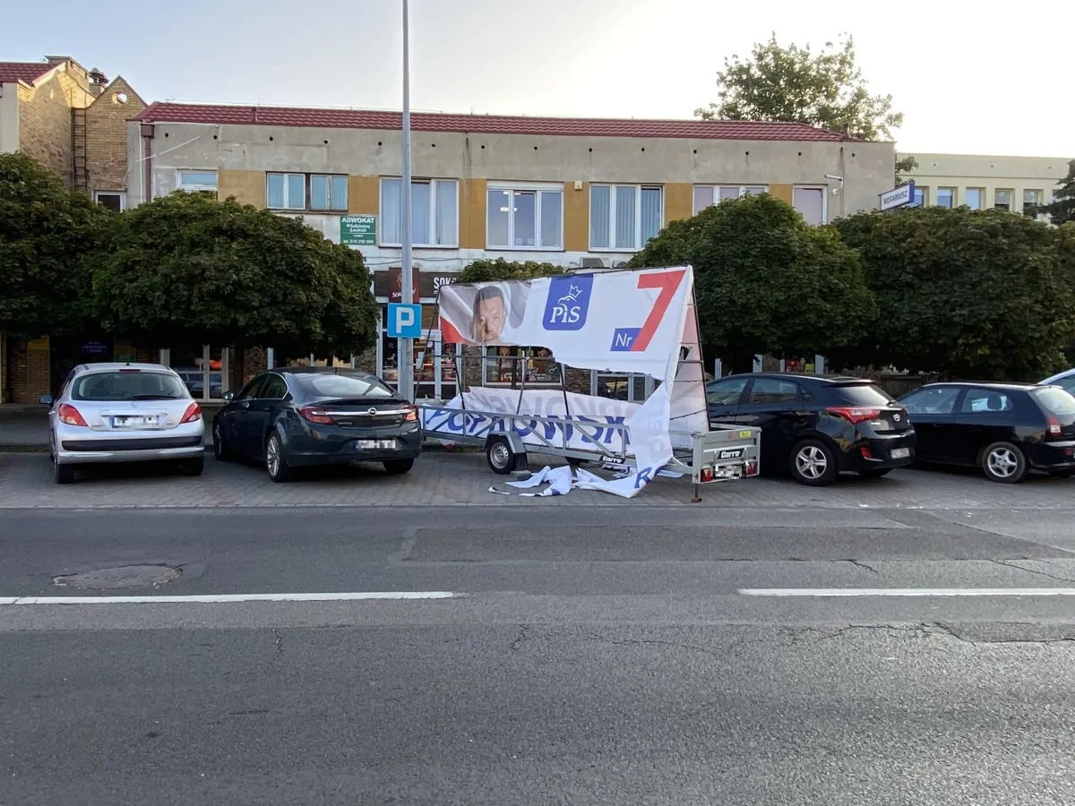 Dzisiejszej nocy zniszczono przyczepę reklamową z zainstalowanym dwustronnie banerem kandydata do Sejmu RP - Roberta Popkowskiego. Przyczepa była zaparkowana na parkingu przy ulicy Włocławskiej w Kole.