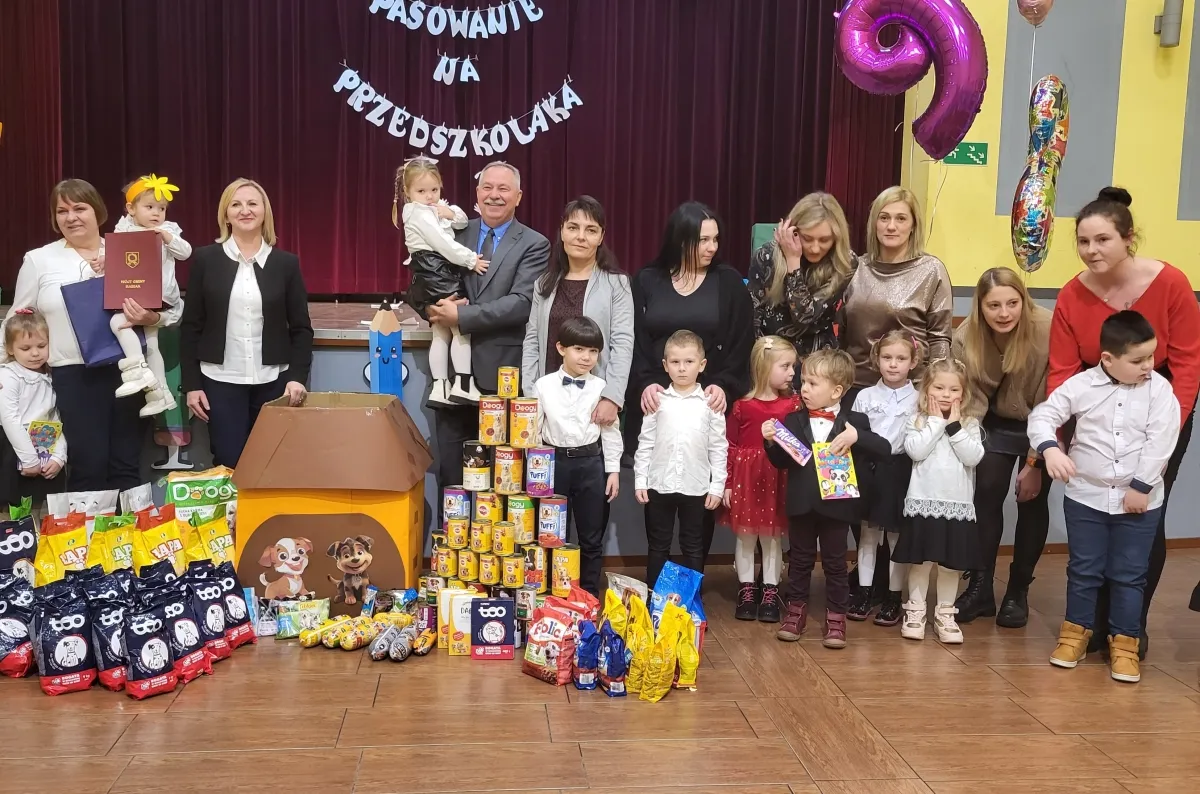 Obecność przedstawicieli władz lokalnych świadczy o zrozumieniu przez samorząd dziecięcych potrzeb i wspieraniu naszych przedszkolnych działań, za co gorąco Wójtowi i Radzie Gminy dziękujemy. Uroczystość Pasowania stała się także okazją do symbolicznego przekazania zebranej w ramach prowadzonej akcji charytatywnej pod nazwą „Pełna miska dla schroniska”, karmy dla bezdomnych piesków, przebywających w Przytulisku w Poloniszu. To dla nas wielka przyjemność, że możemy dołożyć cegiełkę do wspólnego dobra, nasze serca są zawsze otwarte na potrzeby innych, chętnie pomagamy i z tego jesteśmy dumni.