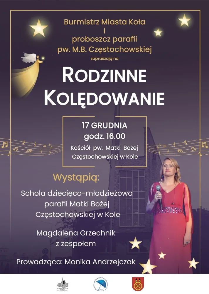 17 grudnia zapraszamy wszystkich, którzy pragną poczuć magię zbliżających się Świąt Bożego Narodzenia, do wzięcia udziału w wydarzeniu - tradycyjnym, rodzinnych kolędowaniu w Kościele Matki Bożej Częstochowskiej w Kole. Będzie to doskonała okazja do wspólnego śpiewania kolęd i delektowania się świątecznym repertuarem, który zostanie zaprezentowany przez wyjątkowy zespół.