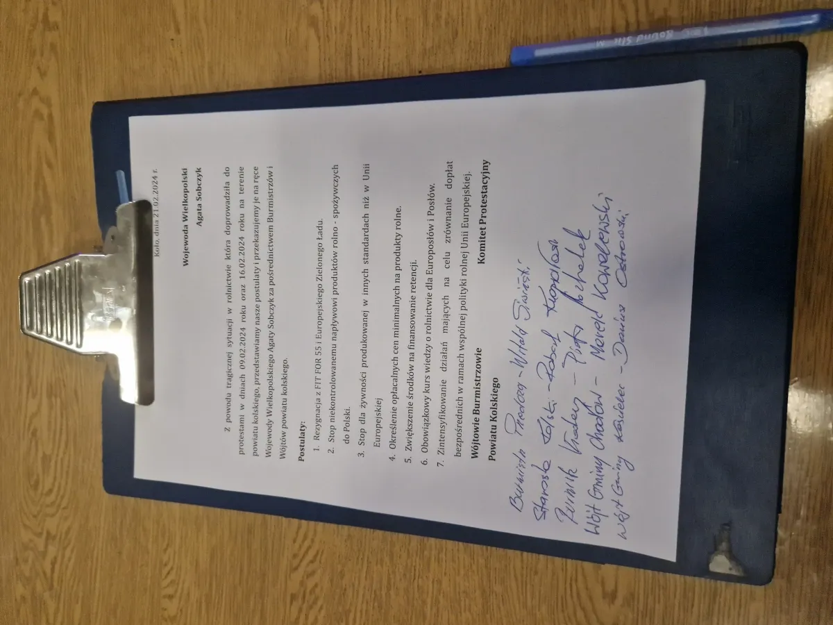 Podpisał się pod nimi między innymi Wójt Gminy Kościelec Dariusz Ostrowski, dając wyraz poparcia i solidarności z protestującymi rolnikami. Petycja zostanie przekazana Wojewodzie Wielkopolskiemu Agacie Sobczyk.