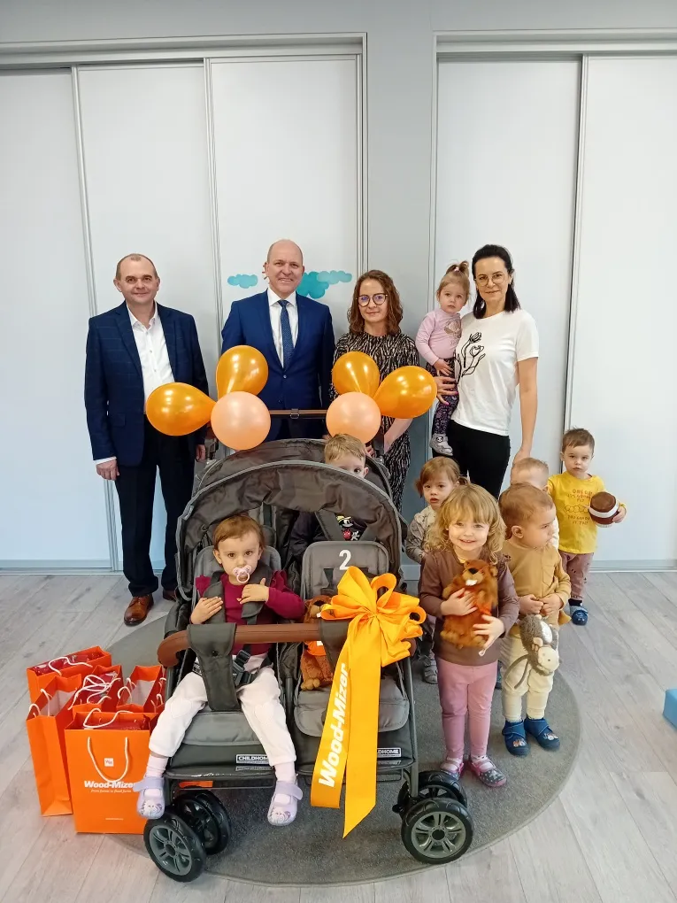 Dziękujemy z całego serca Prezesowi Zarządu Panu Robertowi Bagińskiemu oraz Fundacji Wood-Mizer za wsparcie naszego żłobka poprzez zakup 4-osobowego wózka spacerowego oraz za obdarowanie dzieci upominkami.