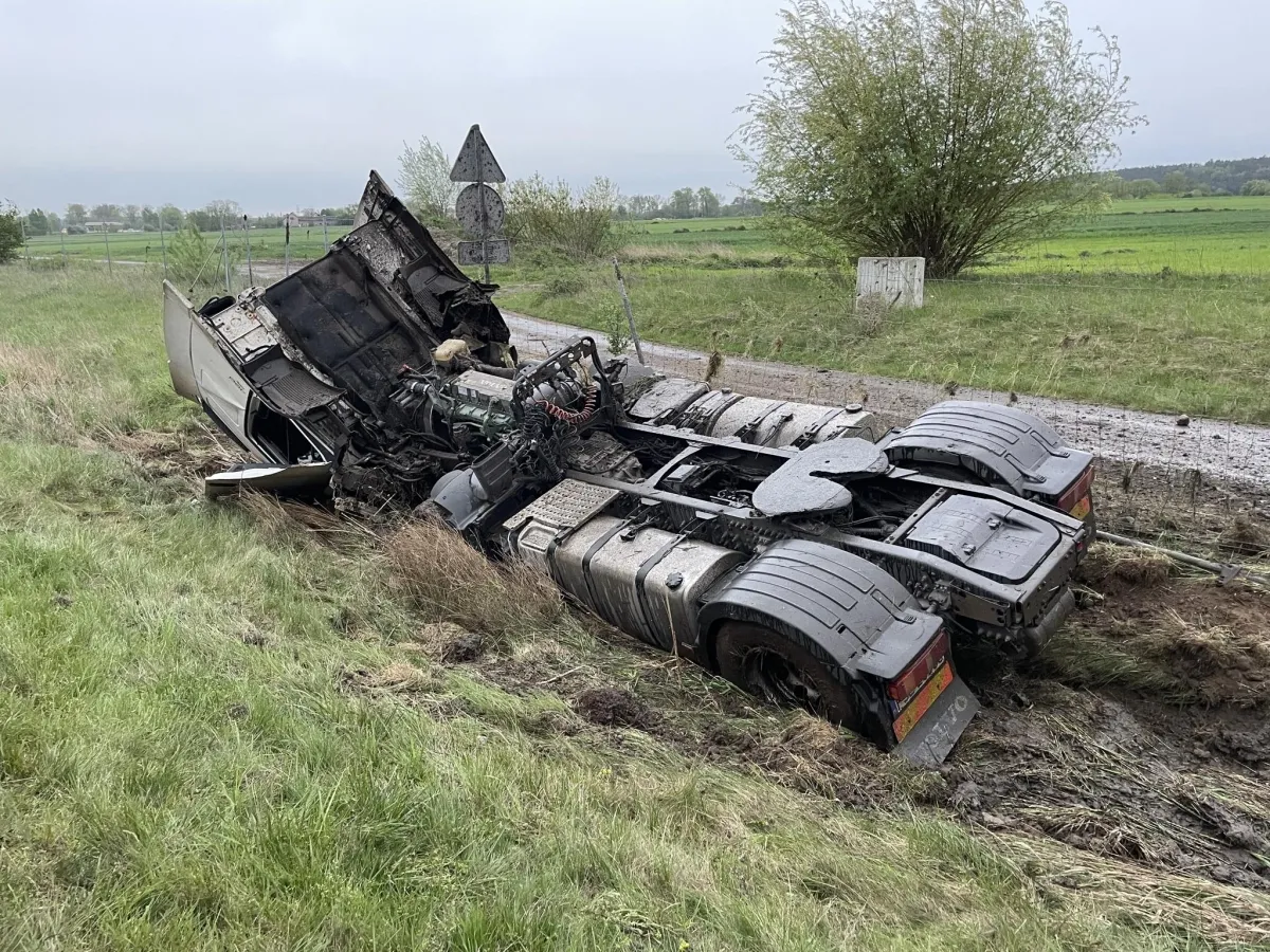 Przed godziną 6:00 z niewyjaśnionych dotyczczas powodów samochód ciężarowy zakończył jazdę w rowie. Kierowca został zabrany do szpitala przez Zespół Ratownictwa Medycznego.