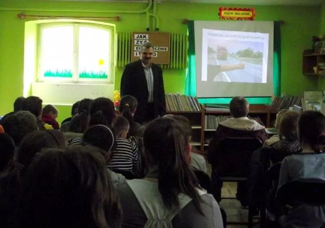 Dla najmłodszych czytelników filii dziecięcej PiMBP w Kole pokaz przygotował Pan Jacek Nowaczyk Naczelnik Wydziału Ochrony Środowiska, Rolnictwa i Leśnictwa Starostwa Powiatowego w Kole.