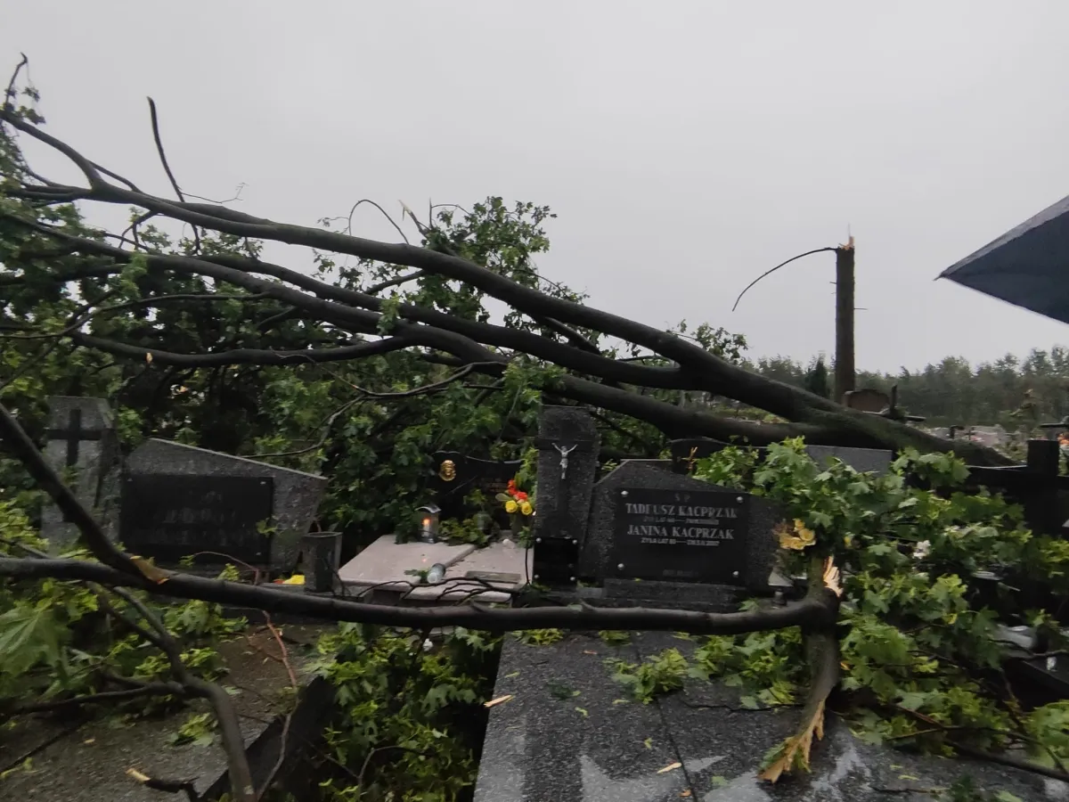 Starsza część cmentarza w Grzegorzewie w wyniku dzisiejszej burzy została uszkodzona. Jak informuje nasza czytelniczka - naliczyła złamanych 11 drzew, które położyły się na nagrobkach.