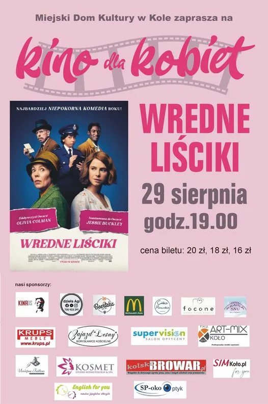 Po krótkiej przerwie Kino w Kole z radością otwiera swoje drzwi dla widzów! Już od 21 sierpnia zapraszamy na nową serię seansów filmowych, w tym szczególne wydarzenie Kino dla Kobiet. Odkryjcie z nami ekscytujące premiery i niezapomniane przygody na dużym ekranie. Rezerwacje biletów ruszają już od 14 sierpnia, godz. 12:00. Możecie je nabyć w kasie kina lub wygodnie online na stronie MDK. Nie przegapcie tego!