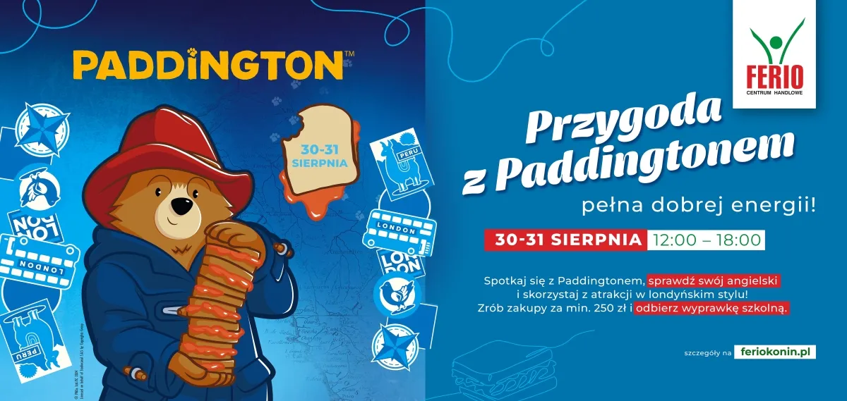 Miś kochający kanapki z marmoladą odwiedzi Centrum Handlowe Ferio Konin! Paddington czeka na Was w dniach 30-31 sierpnia z angielską herbatą i mocą atrakcji! Nie zapominamy też o atrakcjach dla nieco starszych fanów słynnego misia – zróbcie zakupy w Ferio i odbierzcie szkolną wyprawkę.
