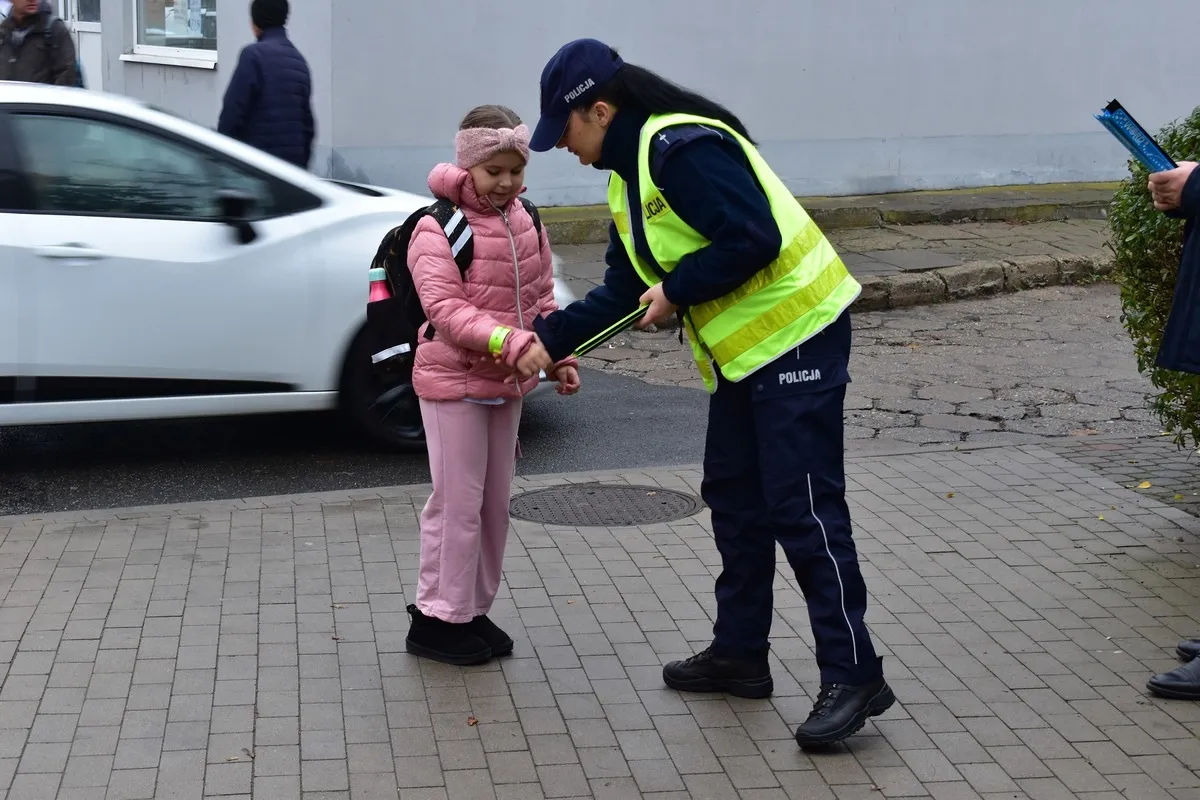 Na zakończenie akcji policjanci z Komisariatu Policji w Kłodawie rozdawali elementy odblaskowe niechronionym uczestnikom ruchu drogowego, takim jak piesi i rowerzyści. Funkcjonariusze, dbając o bezpieczeństwo mieszkańców, wręczali opaski i kamizelki odblaskowe, przypominając o ich istotnej roli w zwiększeniu widoczności na drodze po zmroku.