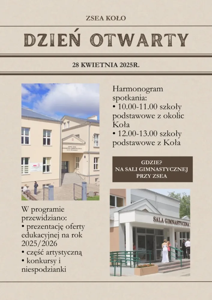 28 kwietnia 2025 roku odbędzie się Dzień Otwarty w Zespole Szkół Ekonomiczno-Administracyjnych w Kole. Wydarzenie ma na celu zaprezentowanie oferty edukacyjnej szkoły dla uczniów oraz rodziców z okolic Koła.
