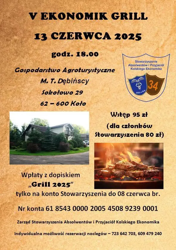 13 czerwca 2025 roku o godzinie 18:00, na terenie Gospodarstwa Agroturystycznego M. T. Dębińscy w Sokołowie, odbędzie się V Ekonomik Grill. To okazja do spotkania oraz integracji środowiska absolwentów i przyjaciół Końskiego Ekonomika.