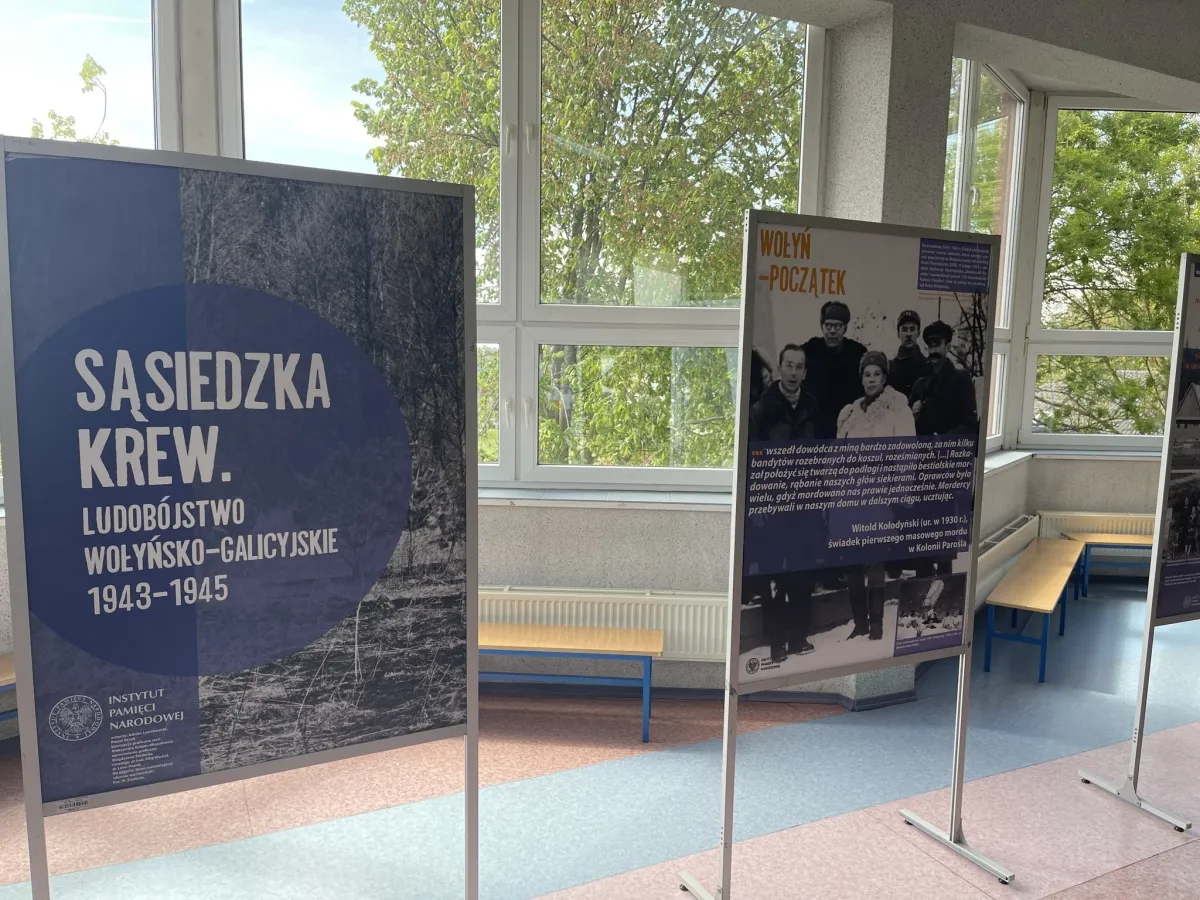 Pierwsza z wystaw, nosząca tytuł „Sąsiedzka krew. Ludobójstwo wołyńsko-galicyjskie 1943-1945”, jest elementarną ekspozycją przygotowaną przez Oddziałowe Biuro Edukacji w Lublinie. Wystawa skupia się na szczegółowym przedstawieniu zbrodni dokonanej na Polakach w 1943 roku przez ukraińskich nacjonalistów na Wołyniu oraz w Galicji Wschodniej. Celem tej wystawy jest ukazanie dramatycznych wydarzeń, które miały miejsce w tamtym okresie oraz ich wpływu na społeczność polską.