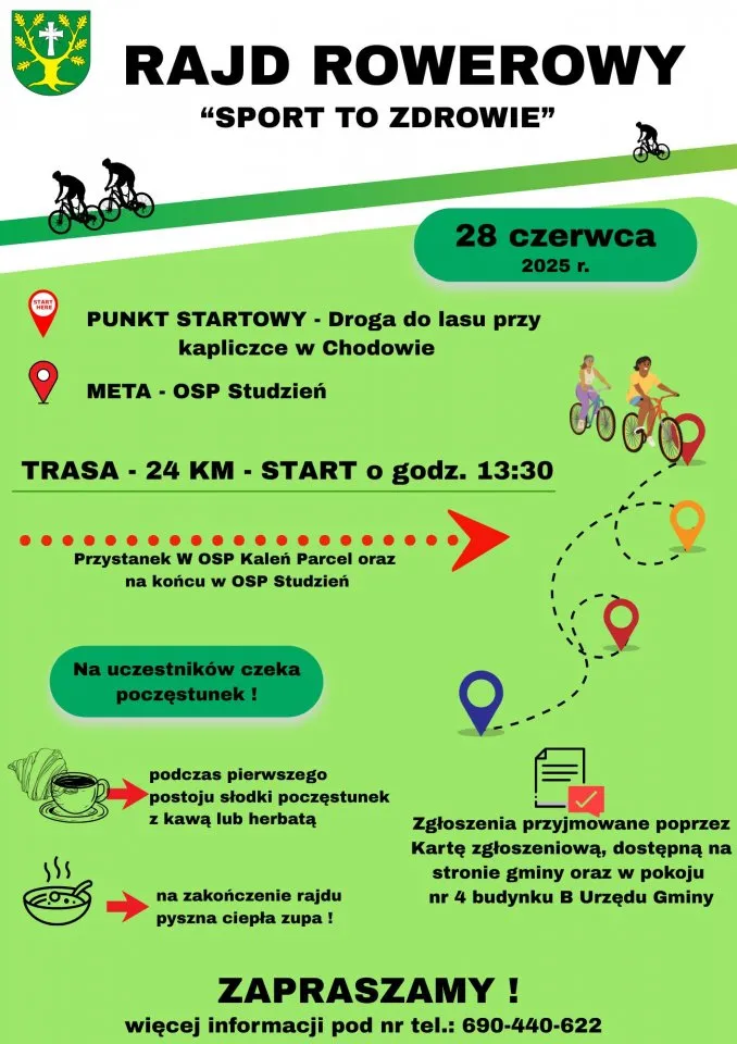 28 czerwca 2025 roku odbędzie się rajd rowerowy pod hasłem "Sport to Zdrowie". Wydarzenie to jest częścią promocji aktywnego stylu życia i zachęcenia do korzystania z uroków przyrody. Uczestnicy mogą liczyć na ciekawe trasy oraz dodatkowe atrakcje.