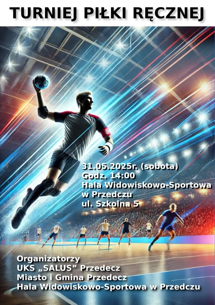 31 maja 2025 roku w Hali Widowiskowo-Sportowej w Przedczu odbędzie się turniej piłki ręcznej. Gospodarzem wydarzenia jest UKS Salus Przedecz, który zaprasza fanów sportu do obserwowania rywalizacji drużyn.